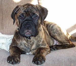 is our only brindle, bred and owned by Bulhaven Bullmastiffs. He was born a
